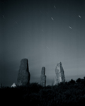 In 2003 I pitched my tent next to the ancient Ring of Brodgar in Scotland and photographed from evening through the night until dawn. That was the beginning of this project, a series of images from Sweden to Armenia featuring various megalithic, standing stones. Also called menhirs, the earliest ones were erected around 3,650 to 2,500 years B.C. Although some of them have burial sites beneath them, and several were obviously used for astronomical observations, we really don't know much about who constructed them or why. This mystery is one of the things that draws me to them.